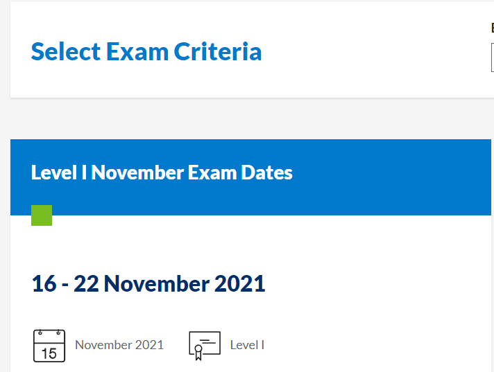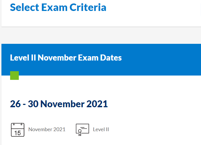 下面,请大家先来回顾一下2021年CFA11月份每个级别具体的考试日期,如下: