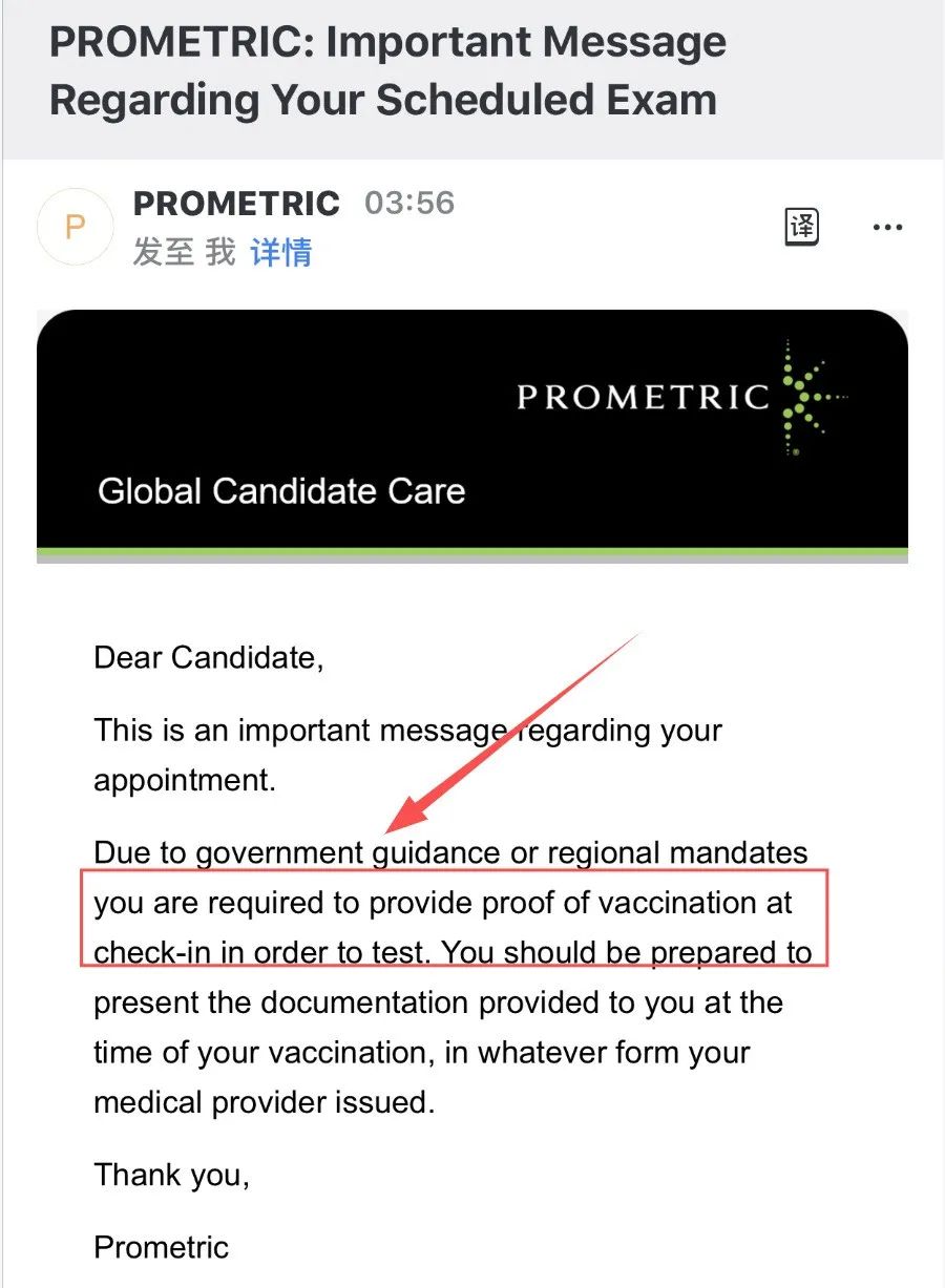 此外成都考场的小伙伴有接到最新邮件通知,参加考试竟然还需要提供疫苗接种证明;邮件如下: