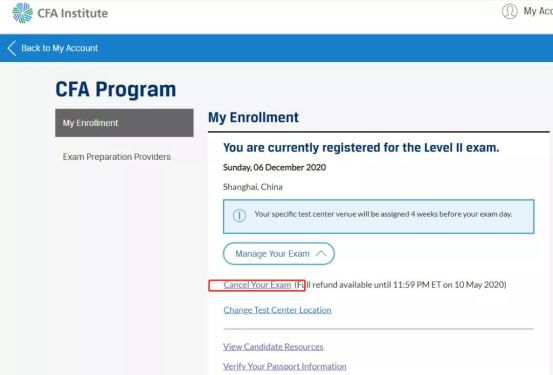 但还是有学员不死心,发现在修改CFA考试日期的时候发现有退款选项,是可以退款吗?