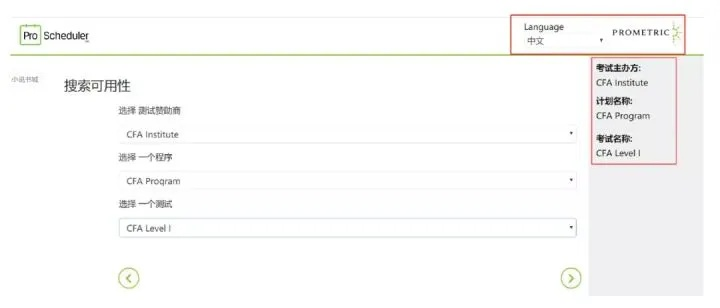 目前没有完成报名缴费的学生只能选择search availability,也就是查看可选择的考点,但不能进行考场和考试时间的正式预约。完成CFA报名的学生,可以正式预约考场和考试时间。